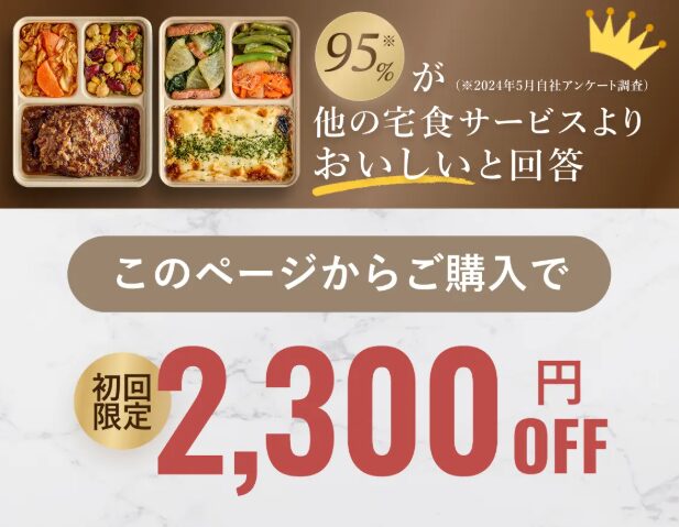 デリピックスでは、初回定期購入を申し込む人を対象に最大2,300円OFFの割引が適用されます。