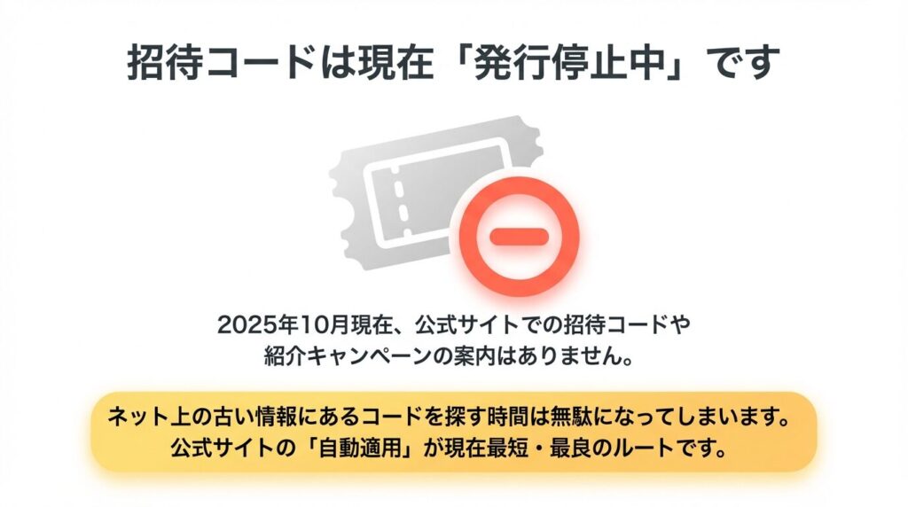 一部のレビューサイトでは「招待コードは発行されていない」と明記されています。