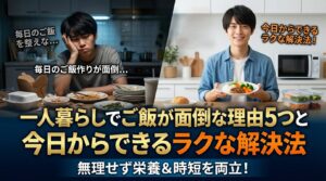 一人暮らしの自炊は「しんどい」と感じる瞬間が多いですが、工夫次第で負担を減らせます。
