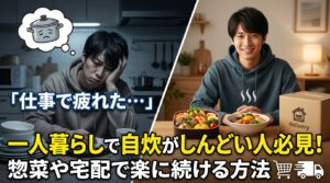 一人暮らしだと時間や気力が足りず、自炊が負担になりがちです。