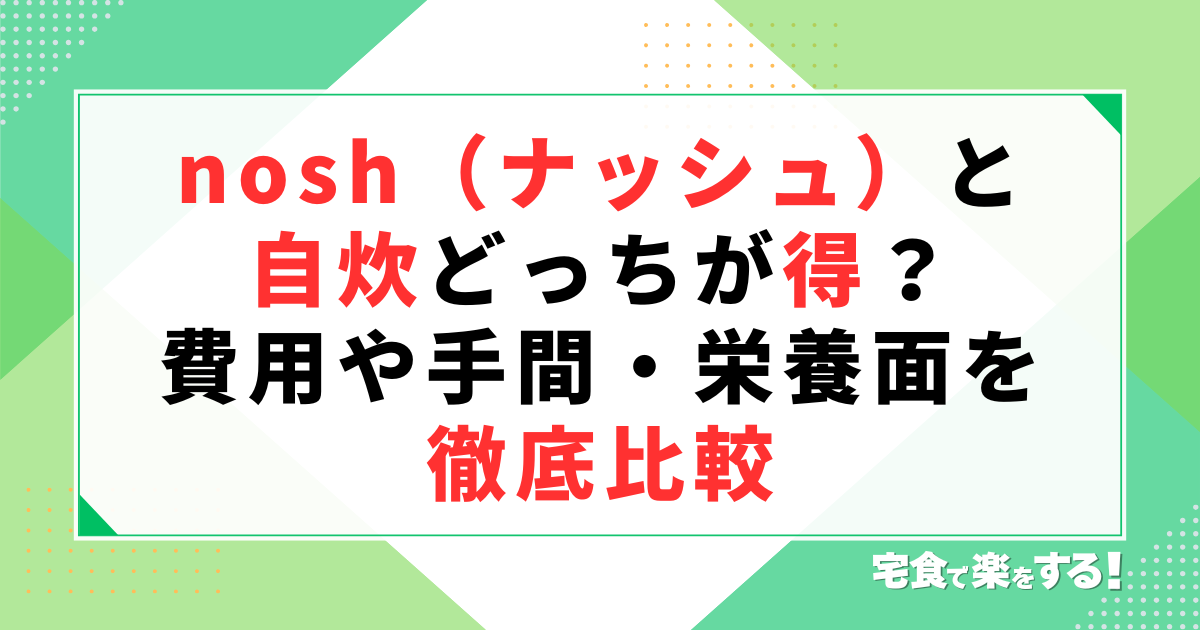 そんなあなたに向けて、本記事では「nosh(ナッシュ)と自炊どっち」をテーマに、