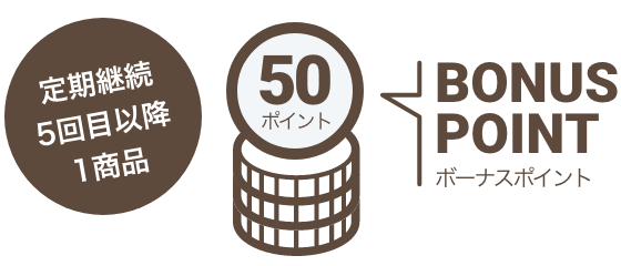 | 定期継続購入ボーナス | ![]() ![]() | 定期便を利用すると 毎回50pt が追加付与 |