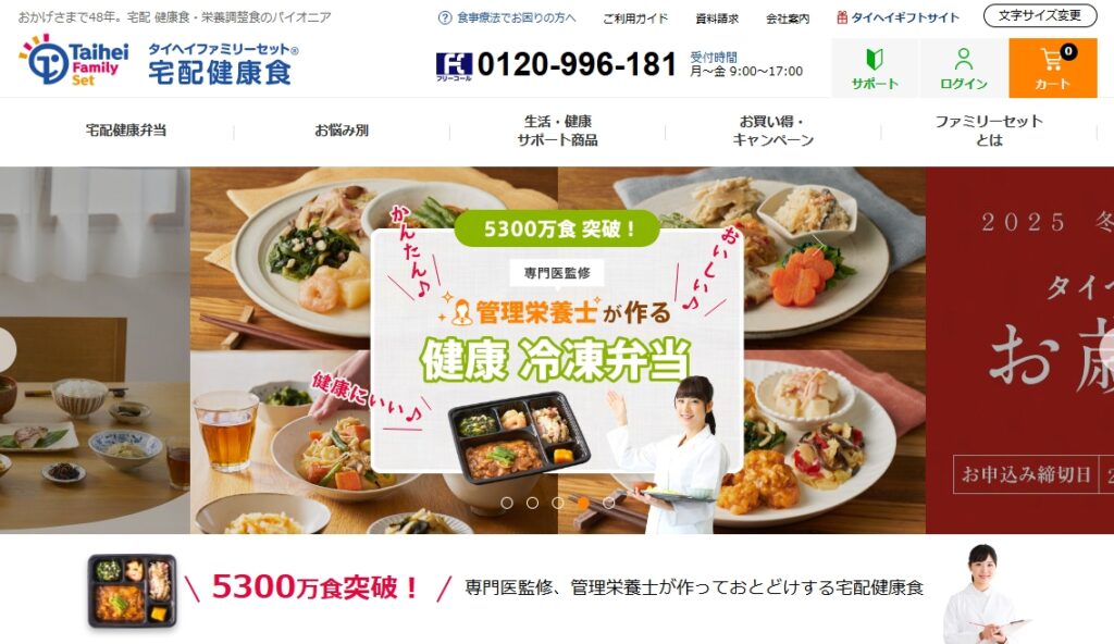タイヘイファミリーセットは、専門医と管理栄養士が監修した健康的な冷凍弁当を自宅に届けてくれる宅配サービスです。