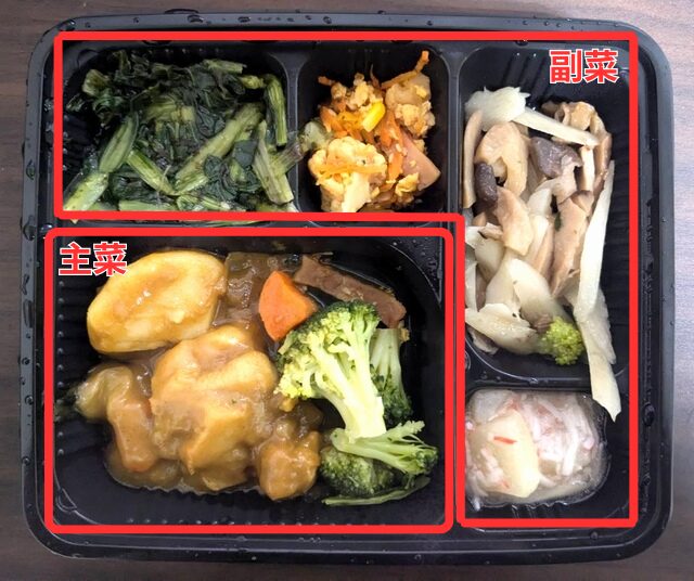 構成は主食1品+主菜1品+副菜3品となり、しっかり食べたい人向けです。